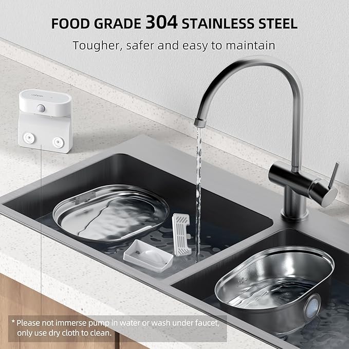 - [More Safe and Sturdy] Because it is composed of food-grade 304 stainless steel, this pet water fountain is safe and long-lasting, no scratches and filth, preventing cats from developing black chins, and ensuring enduring performance. The external pump is isolated from the water to ensure electrical safety. The design's detachability makes maintenance and cleaning easier.