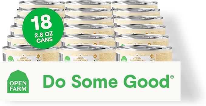 Open Farm Canned Cat Food, Paté for Complete & Balanced Nutrition, Grain-Free and Legume-Free Wet Cat Food, Harvest Chicken Recipe, 2.8oz Cans (Case of 18)