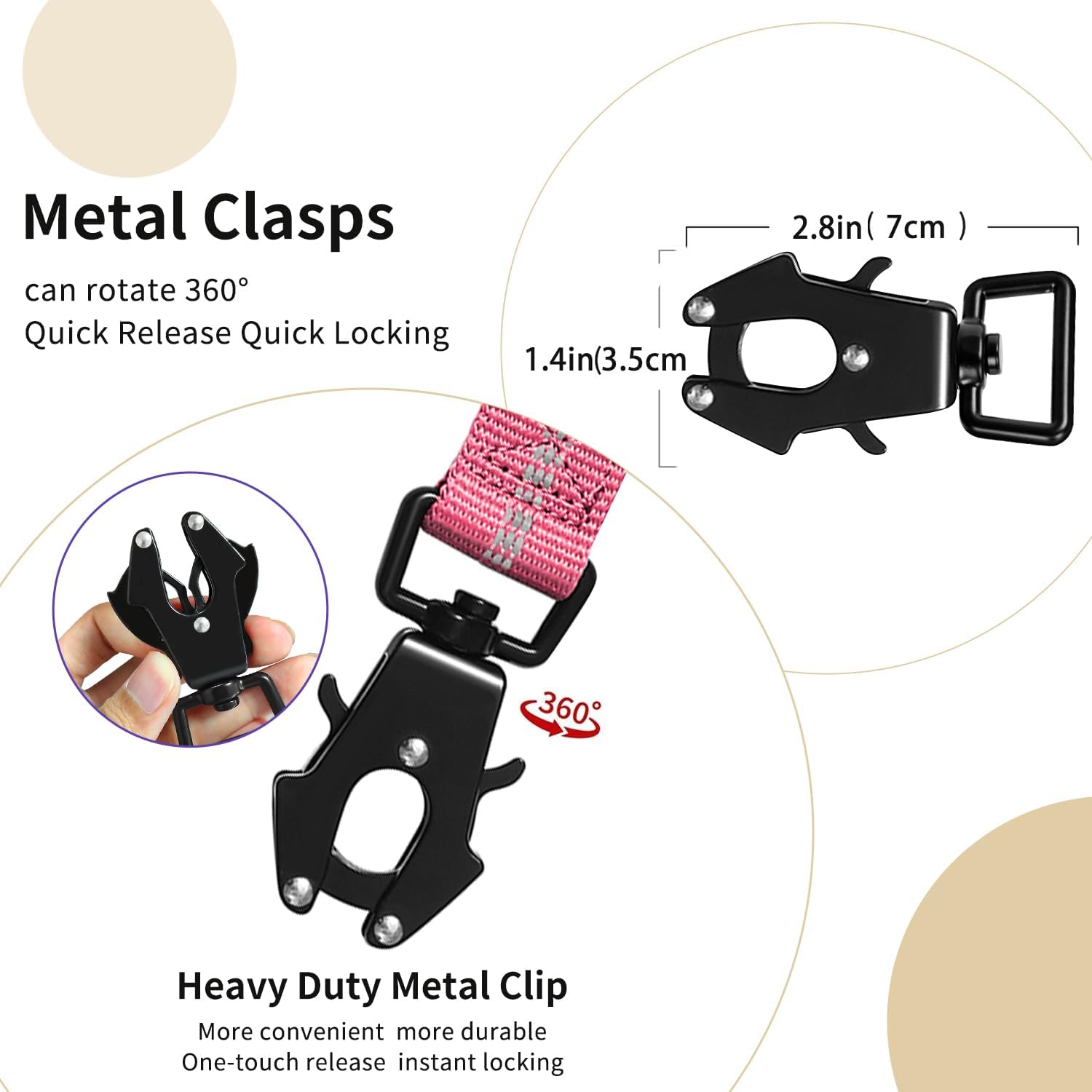 - 【🐕Quick Release Frog Clip 】heavy duty dog leash The 360° Rotating Frog Clip is made of Aviation Aluminum,can hold up to 400 pounds. Quick release and locking dog leash buckle while holding tight under strong pull. 360°rotatable to prevent the dog leash from twisting and knotting.