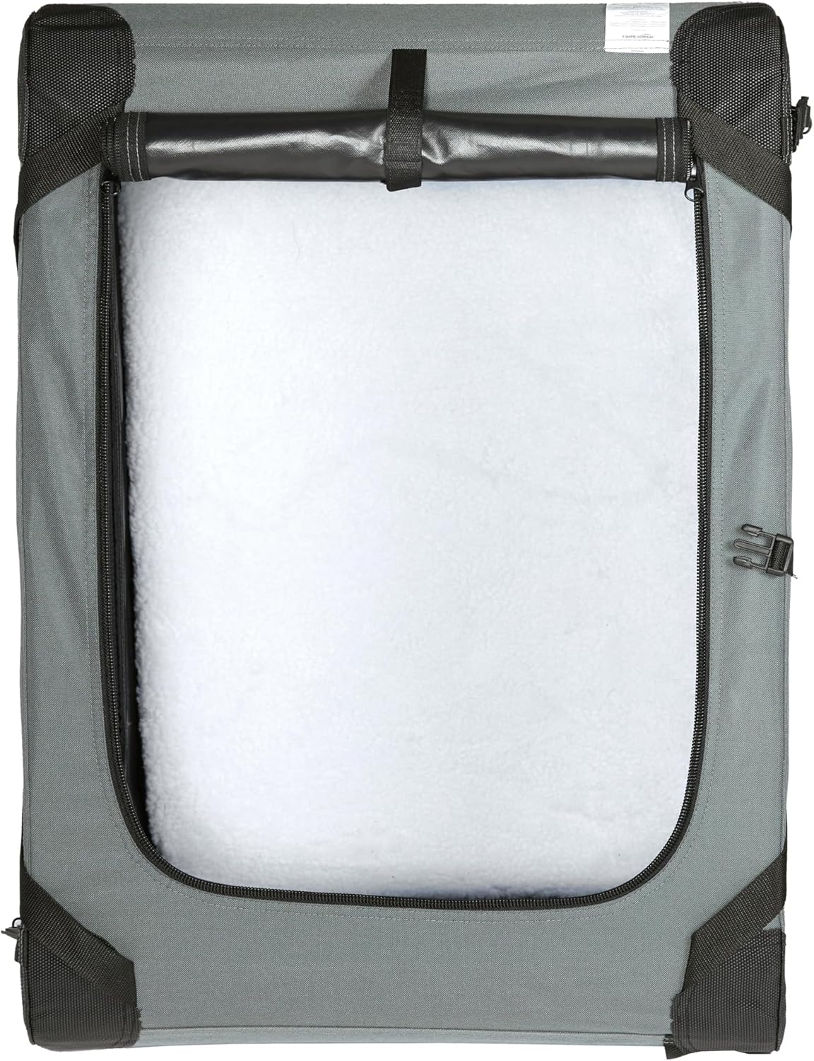 - Carrying handle and padded shoulder strap for easily transporting when pet kennel is folded; includes removable fleece pet bed pad