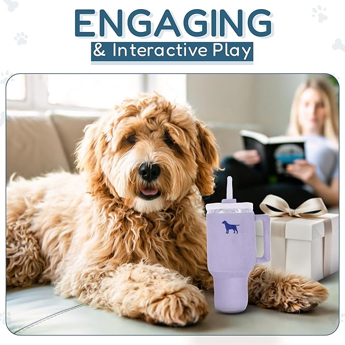 Pup Cup Tumbler Dog Toy – Birthday Dog Toy, Funny Squeaky Plush Puppy Gift, Cute Birthday Present (Lavender Purple)