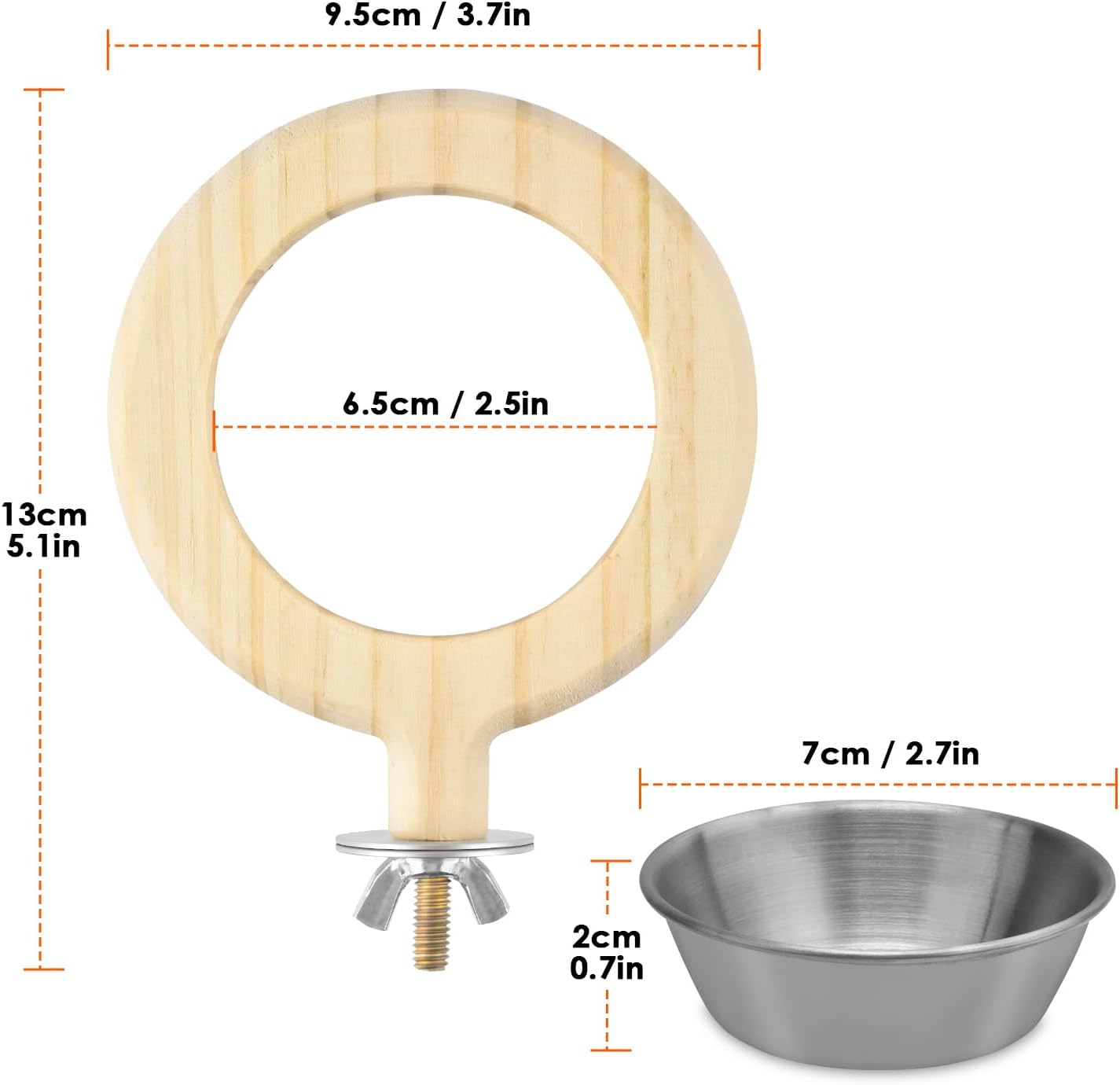 - FEEDING CUP & PERCH: KATUMO bird food bowl and wooded perch holder are combined in one, suitable for parakeet, canary, conure, lovebird, budgie and more small pets.