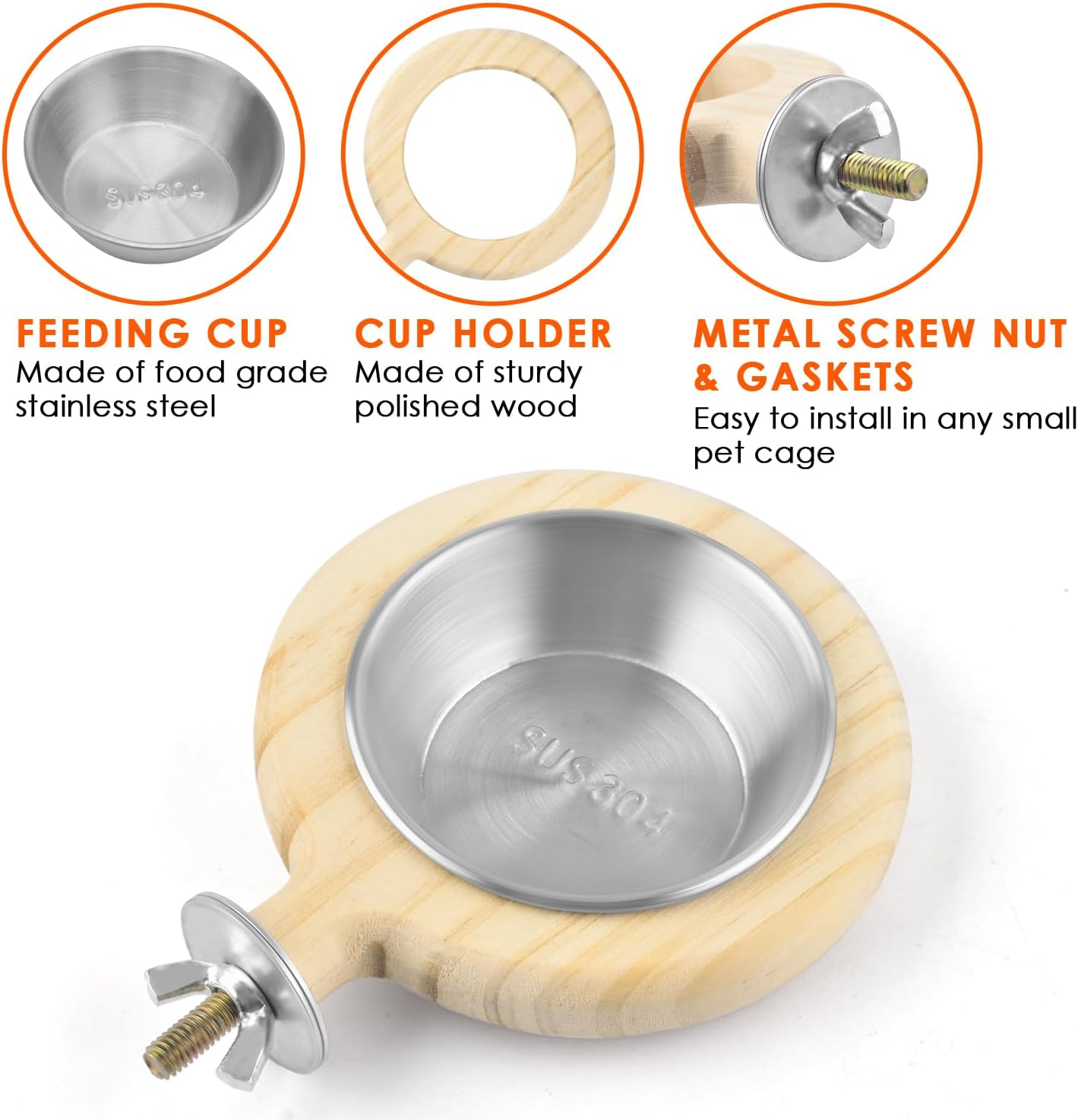 - EASY TO USE: With metal gaskets and nut, the bowl holder can be installed in all pet cage. Sturdy and stable for small birds to stand on the rim while enjoying food dish