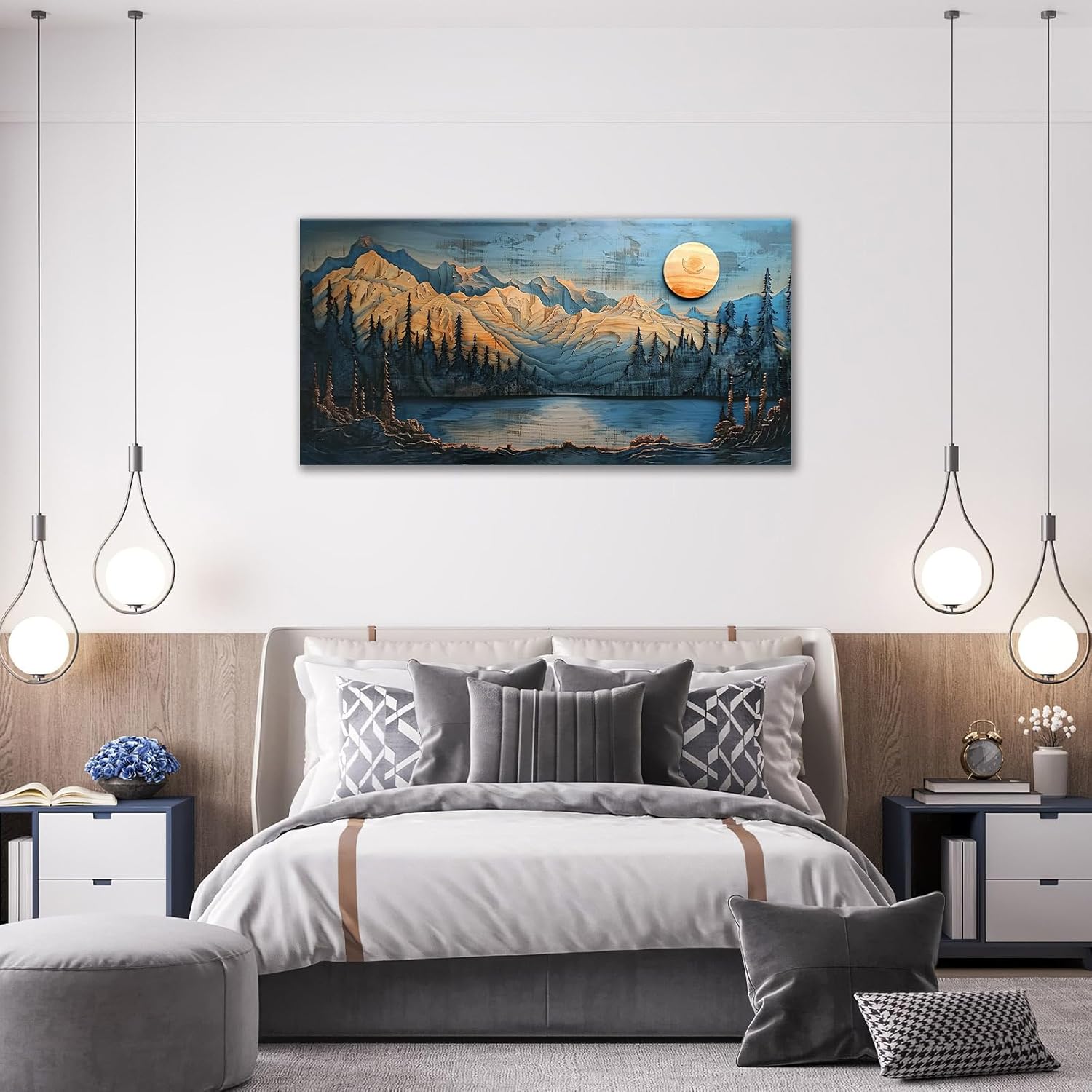 - 【Bedroom Wall Decor】 This oversize wall art are made of high-quality canvas material to ensure durability, Also wrapped in a wood frame that will last,tightly stretched to ensure the canvas won't crease and bend.
