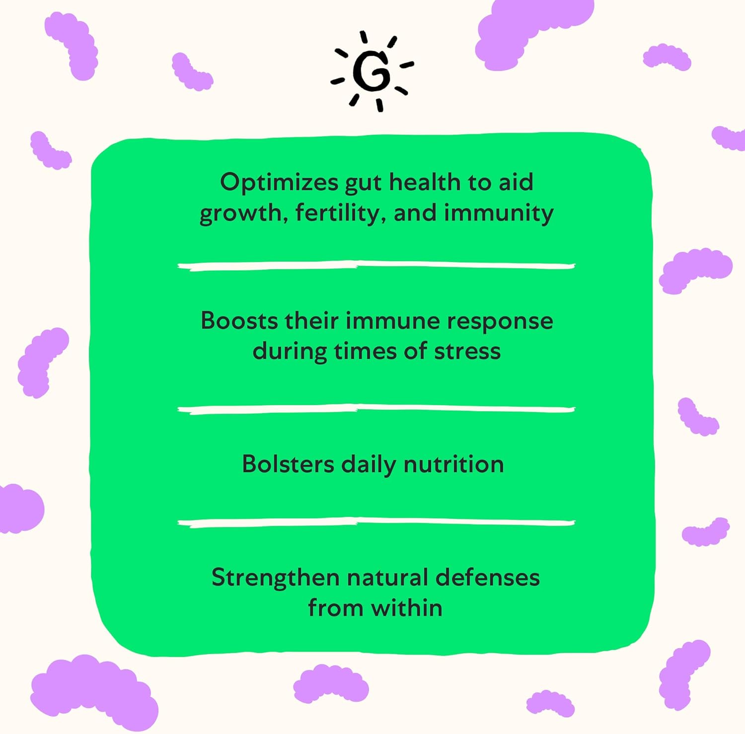 - Improves gastrointestinal integrity and stability