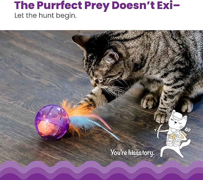 - Squeaky & Feathered Hamster Toy: Includes a squeaky hamster plush toy with feathers to keep your cat engaged; Adds an extra level of fun and excitement during interactive play and encourages your cat to continue hunting