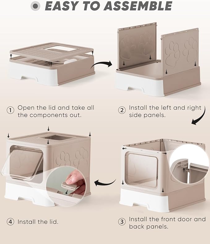 - Two-Way Entry and Exit Design: This enclosed litter box features a versatile design with two ways to enter and exit. An adjustable clip allows you to set the front door for entry-only, which encourages your cat to leave through the top opening. This one-way system also helps to collect litter. Alternatively, you can let your cats use the door for both entering and exiting to suit their habits