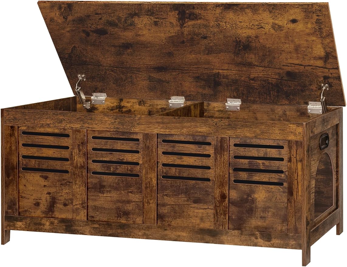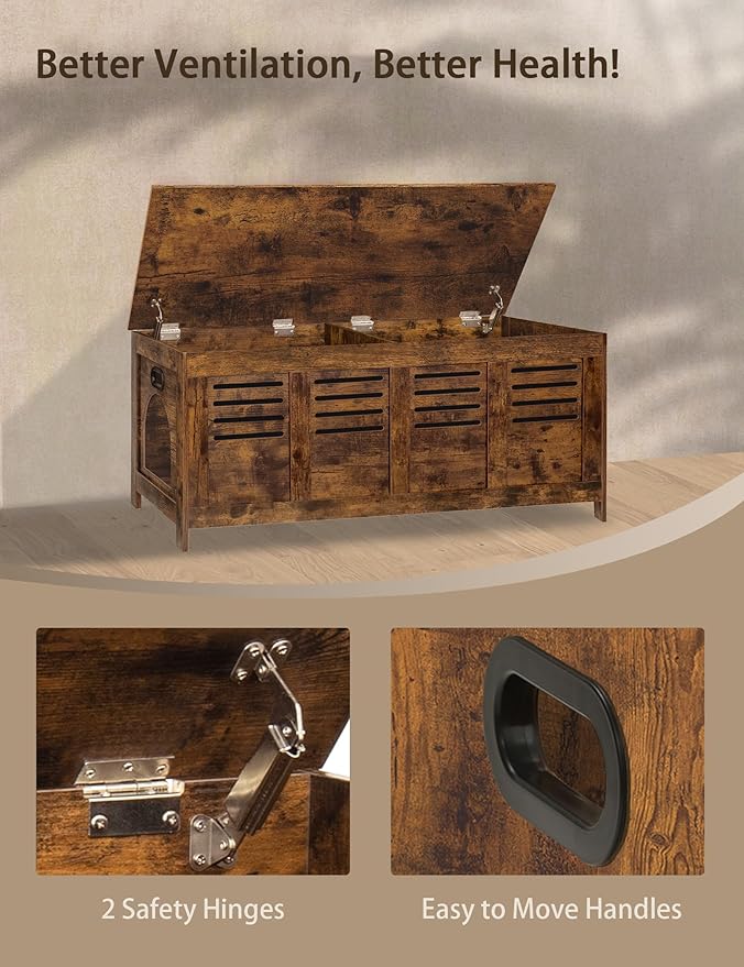 DINZI LVJ Litter Box Enclosure Furniture for 2 Cats, Top Opening Hidden Litter Box with Double Rooms, Dual Cat House with Good Ventilation, 47.2" Wooden Cat Washroom, Box Cabinet, Rustic Brown