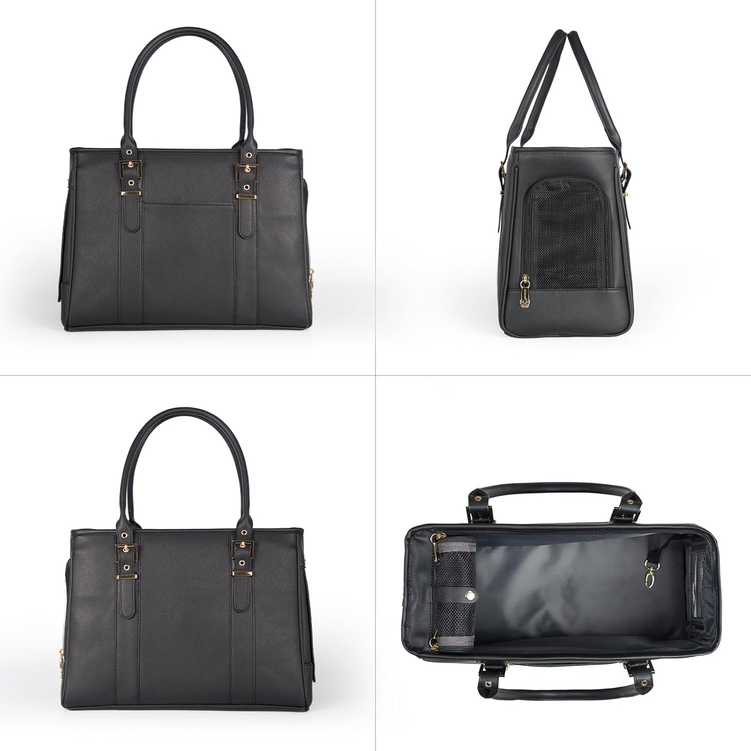 Fashion Pet Carrier Dog Purse Cat Bag Soft-Sided Carriers Travel Airline Approved, Stylish Leather Tote Handbag for Small Animal Puppy Kitten (Black)