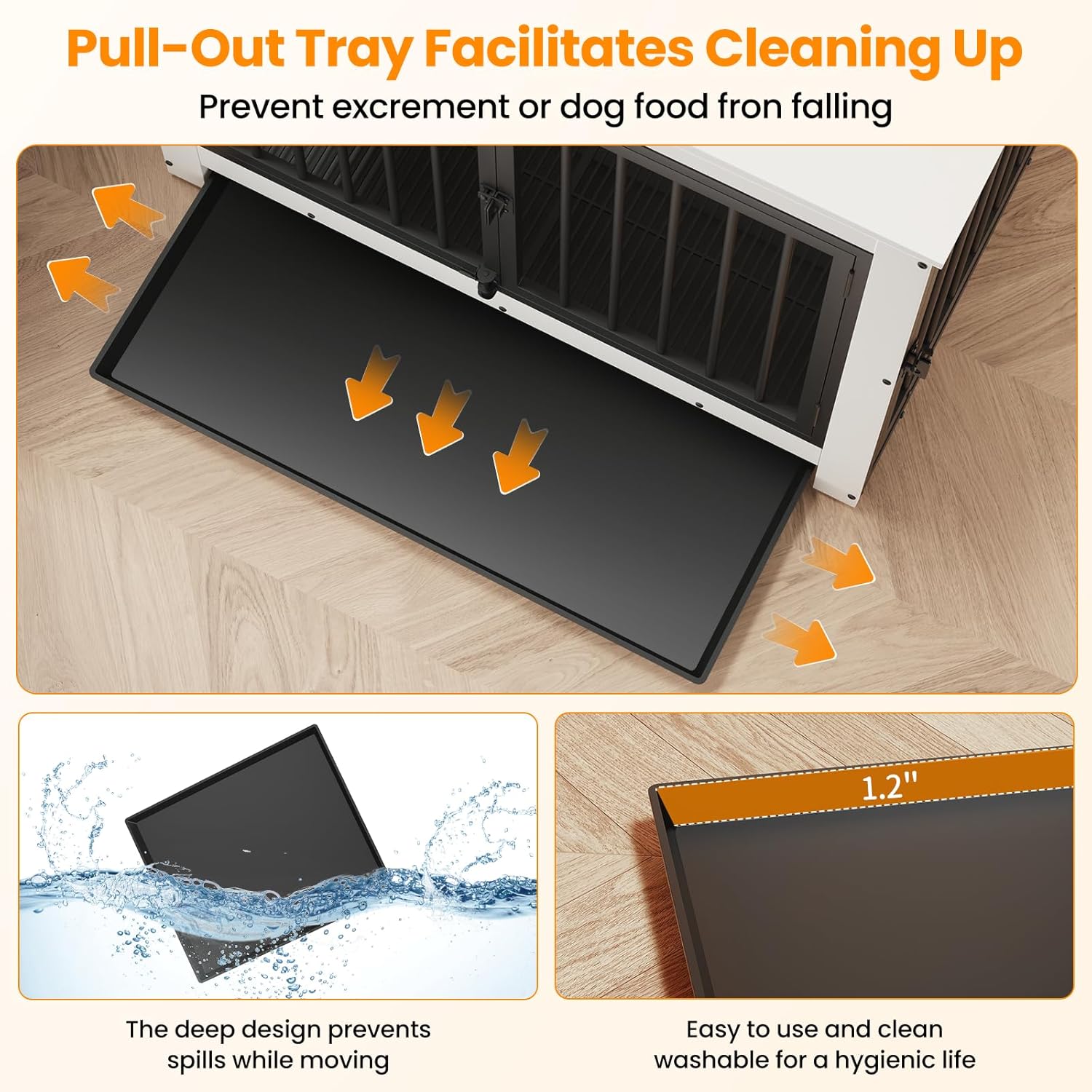 Dog Crate Furniture, Dog Crate End Table for Medium and Large Dogs,Wooden Cage Kennel Furniture Indoor, Modern Dog Crate with Multi-Purpose Removable Tray, Double-Doors Dog Furniture, White
