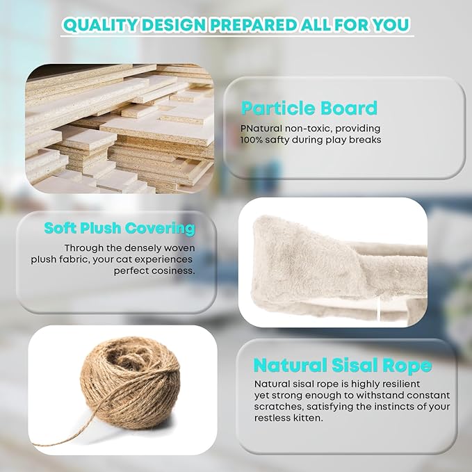 - 🐱 【Posts for Scratching Covered in Sisal 】These are scratching surfaces that are integrated into the framework. Cats love to bury their claws in sisal because it's a sturdy substance with a coarse texture. Our cat tree promotes healthy scratching habits and helps discourage cats from damaging furniture by offering dedicated spaces for them to scratch.