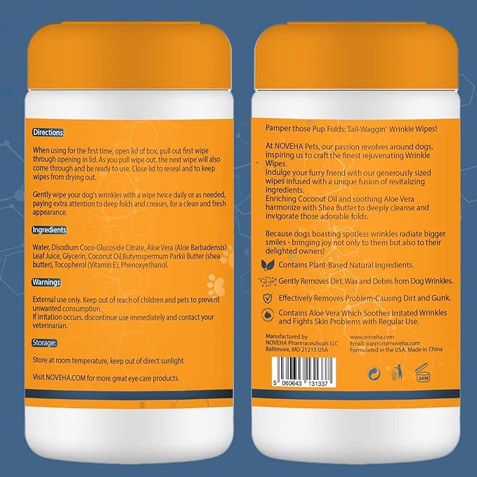 - ๐พ NATURALLY HEALTHY PET SKIN - Aloe Vera and Coconut Oil in NOVEHA Wrinkle Cloths promote hydrated, soothing care for your dogโs skin.