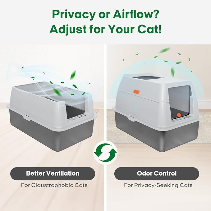 - Customizable Entry & Enclosure: Features a detachable two-layer shell, allowing you to switch between fully enclosed and semi-enclosed modes. Choose top or front entry to match your cat’s needs, with options for odor control, ventilation, and easy cleaning.