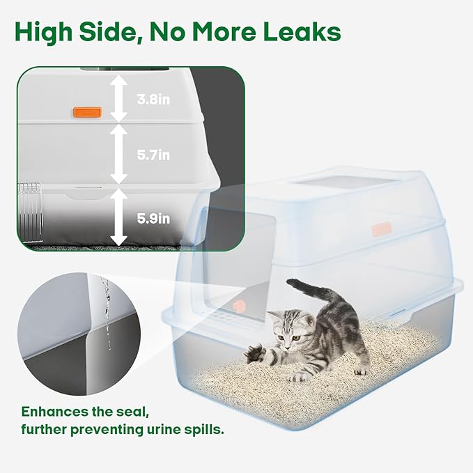 - Mess-Free & Spacious: High sides prevent litter scatter and leaks, while the extra-large 24x16x17 inch design holds 20 liters of litter—ideal for large or multiple cats and reducing frequent changes.