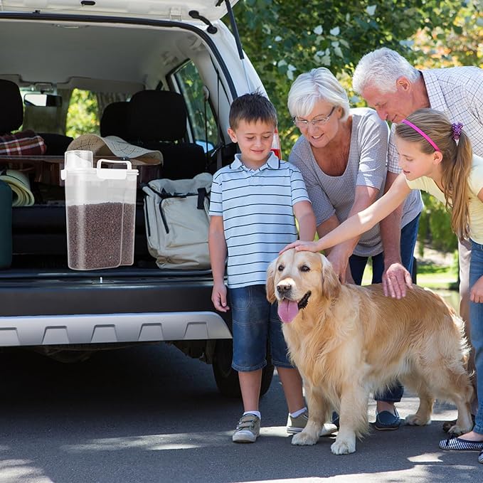 - WHAT YOU GET ? The dog food storage container comes with a 1-pack airtight pet food storage container with a clear measuring cup and an upgraded large spout for easy pouring of pet food at any time. This dog food storage containers can be a gift The perfect gift for any home.