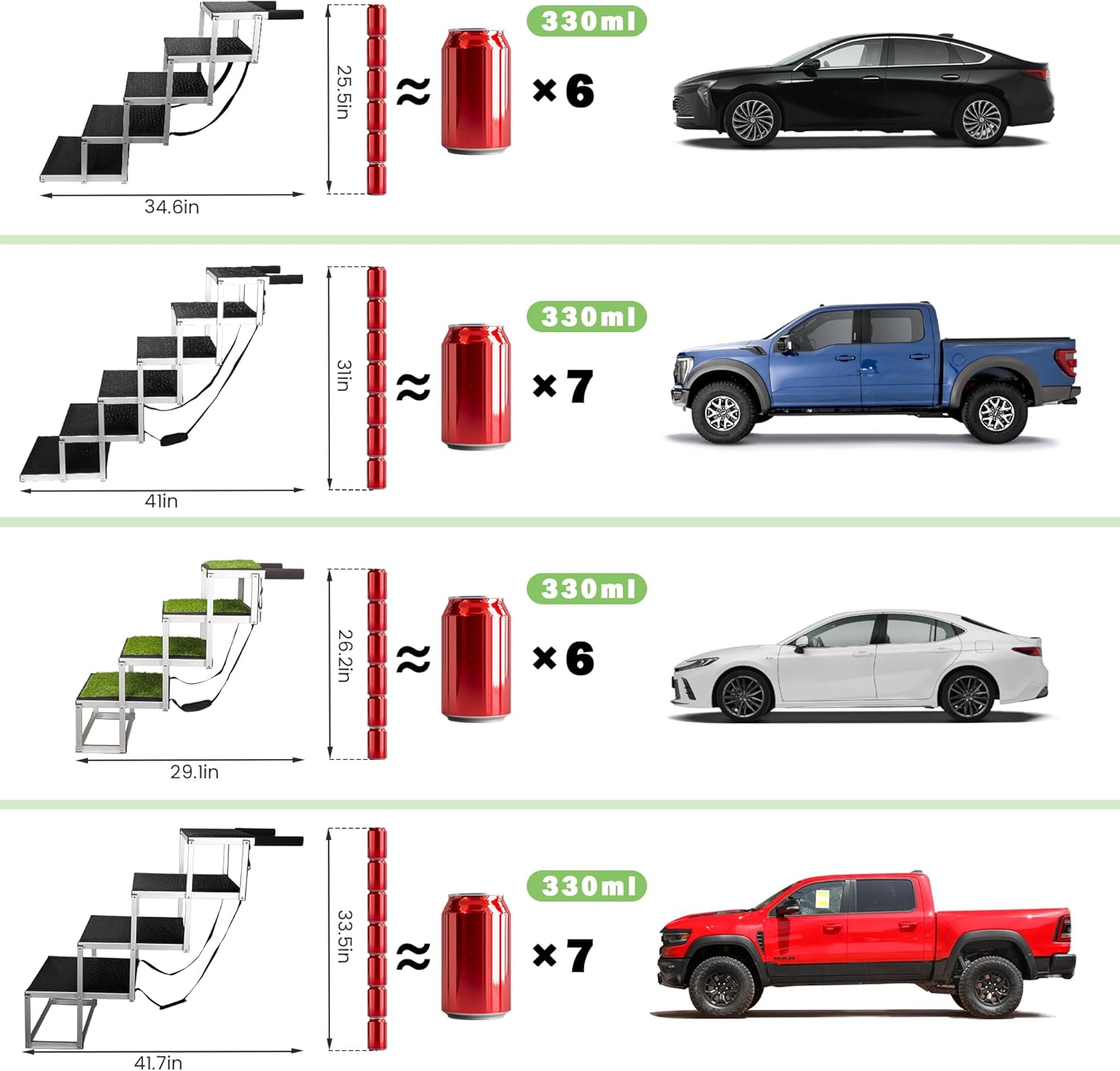 - Safe & Comfortable Transit: Our PetStep ramp features a unique grass-like artificial turf that provides a natural grip for your pet’s paws, reducing anxiety and encouraging confident, comfortable movement into and out of your vehicle.