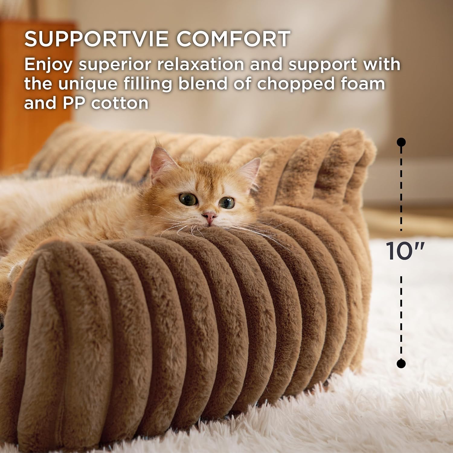 Bedsure Cute Cat Couch for Pets - Fluffy Small Dog Sofa with Premium Soft Corduroy Fleece, Pet Sofa with Removable Washable Cover, Supportive Dog Couch Bed for Small Medium Dogs, 30inch, Copper Brown