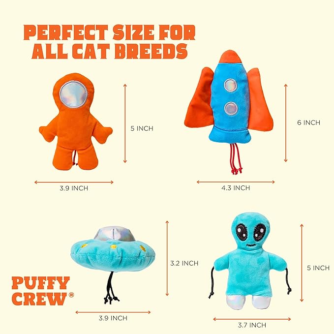Interactive Catnip Cat Plush Toy, Space Travel Theme, 5‘’, for All Breed Size Cats (4 in 1)