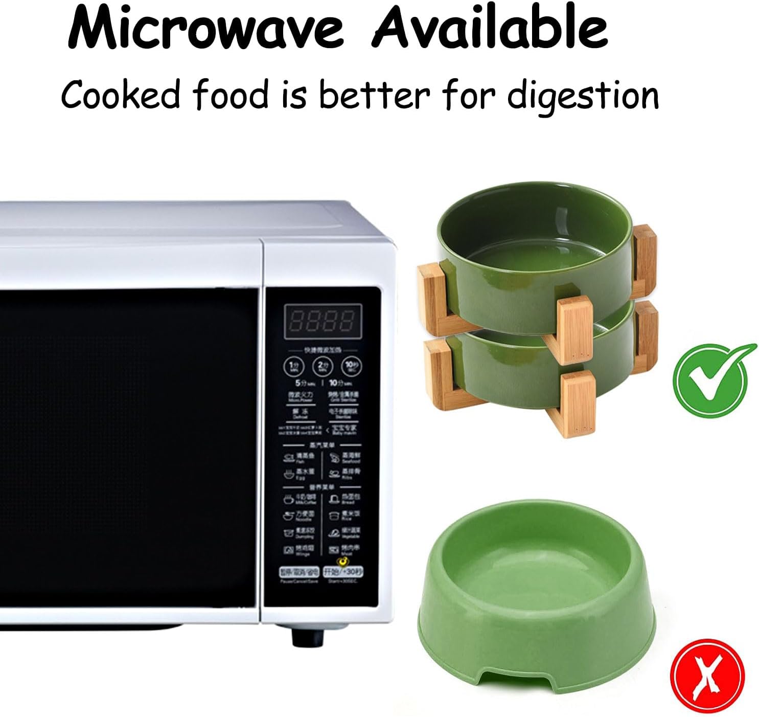 - Dog Bowls with Stand: the wooden stand hold on the dog food bowl which makes the bowl is sturdy enough and do not slide easily, even the naughty dog cat can't flip it over, cutting down drastically on making a mess.