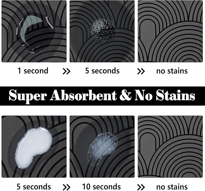 - Absorbent & No Stains: The pet food mat made of high quailty material can absorb spilled water in just a few seconds and leaves no stains. The dog bowl mat provide a dry clean eating area for your puppy.