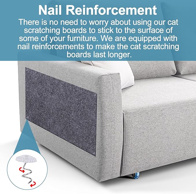- Traditional cardboard cat scratching posts are bulky, heavy, and costly. They also produce a lot of paper scraps after cats scratch them, which requires a lot of time to clean. Our cat scratching board is made of high-quality polyester fiber using newly upgraded technology. It is durable, wear-resistant and not easy to tear. It can be reused. It can be posted on the home surface where cats like to scratch so that cats can play in their favorite places. Because you don’t want your cat to sit on her favorite sofa, using a scat mat for cats or a cat calming diffuser to repel the cat will harm cat.