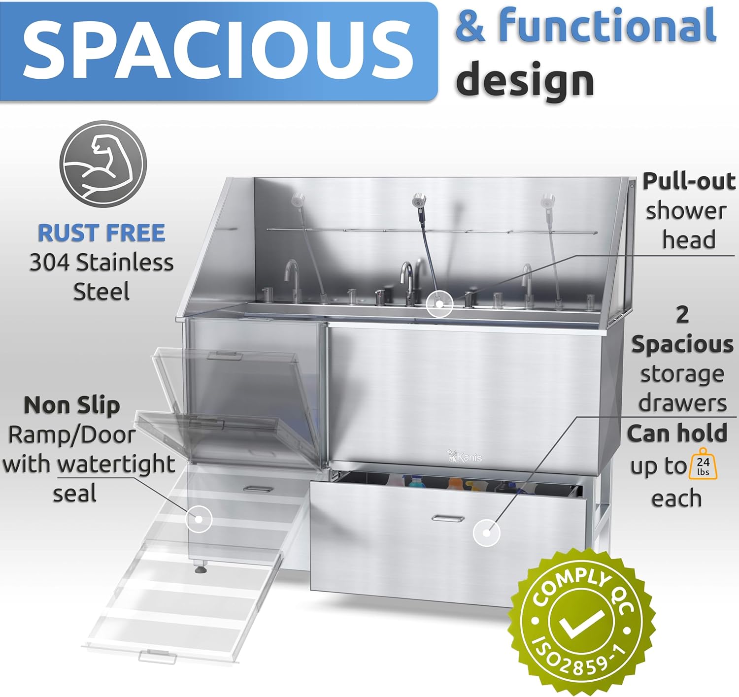 • MORE THAN FUNCTION - BUILT WITH PURPOSE: Every KANIS dog tub is purpose-built for comfort, safety, and a stress-free experience. With ergonomic design, Paw-Safe surfaces, and a Fear Free approach, we focus on well-being, not just functionality