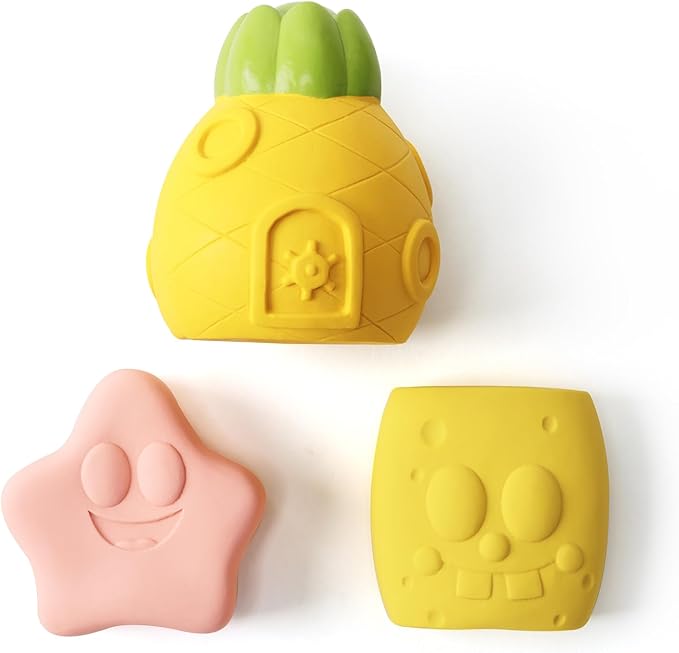 - Dimensions: The squeaky toys measures 3.9x3.2x3.2 inches, making them a great size for medium dogs. Not suitable for large dogs or aggressive power chewers. These toys are soft and squishy, gentle on teeth and have funny patterns printed on them with a variety of playful colors. Great for bringing to the dog park, using in the backyard or for entertaining your dog in the house. Your dog is sure to love playing fetch with these toys