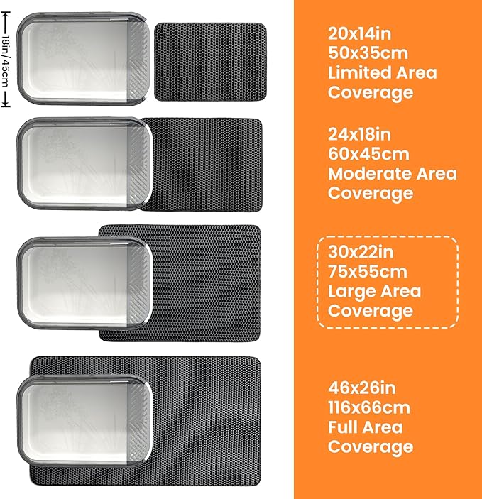 - Excellent Cat Mat for Litter Box: Measuring 30x22 inches, this black cat litter pad is designed to catch every stray piece of litter from your cat's paws and the floor. Place it in front of or under the litter box — it's up to you. Keep your home clean and tidy with less daily sweeping and no lingering odors. Enjoy a fresher space and more free time for yourself!