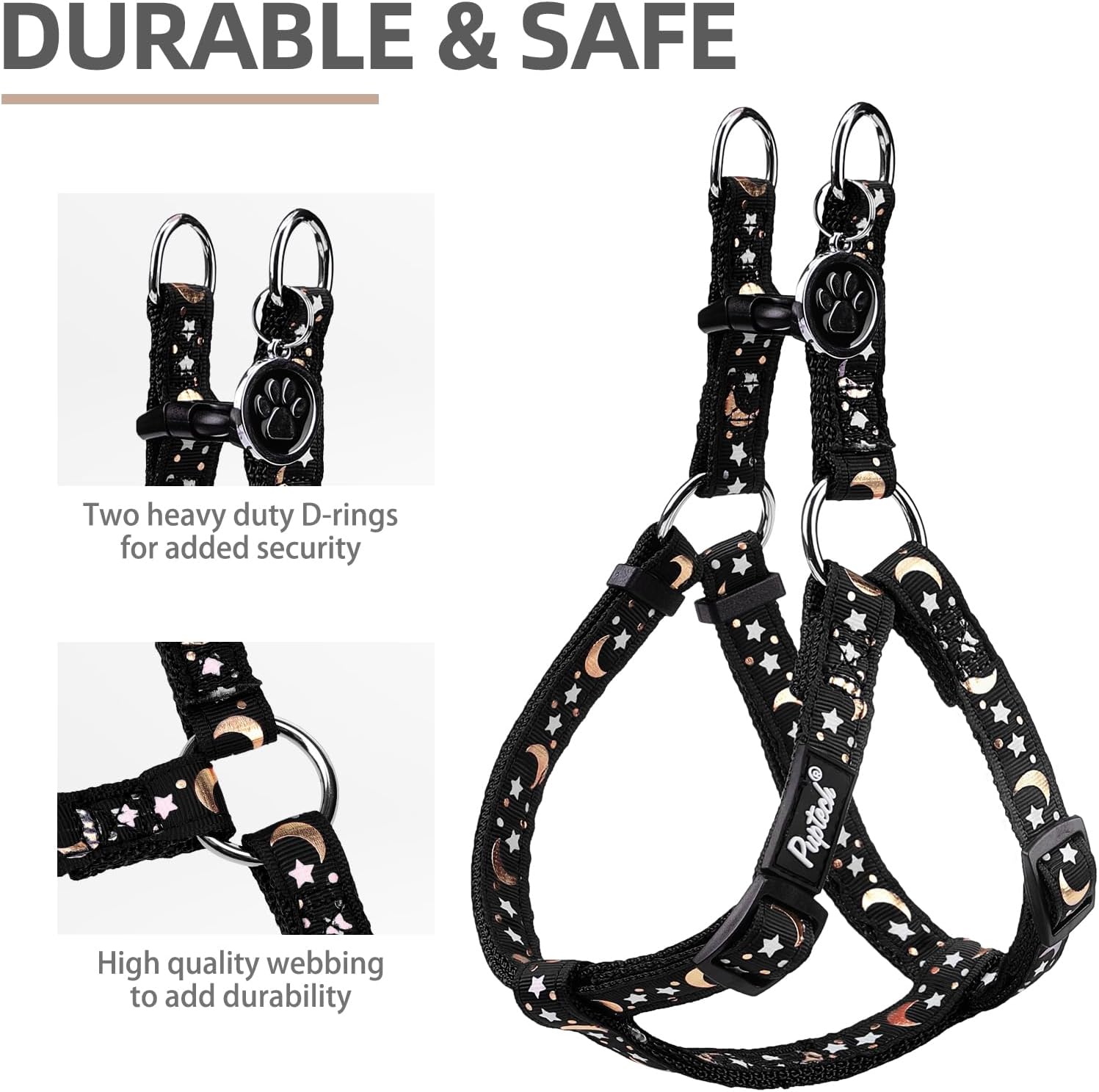 PUPTECK No Pull Dog Harness Soft Adjustable Basic Nylon Step in Puppy Vest Outdoor Walking with ID Tag, Moon Star Black, S