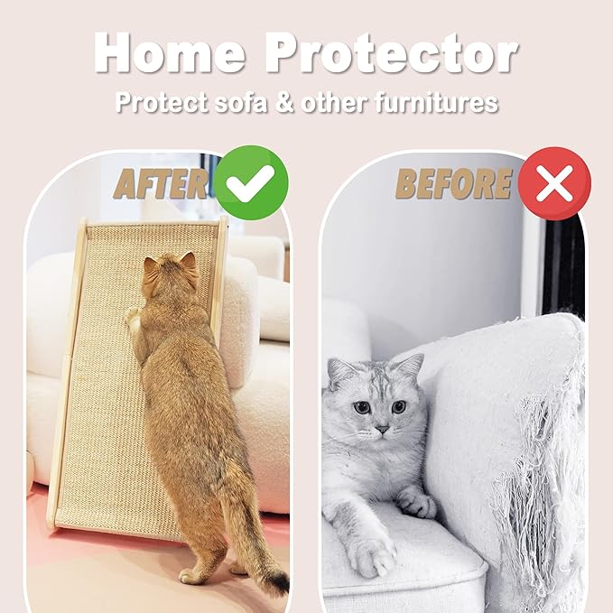 - FURNITURE PROTECTION: Say goodbye to scratching furniture! Redirect your cat's natural scratching behavior towards our durable sisal fiber scratcher, ensuring your sofa and wall stays intact.
