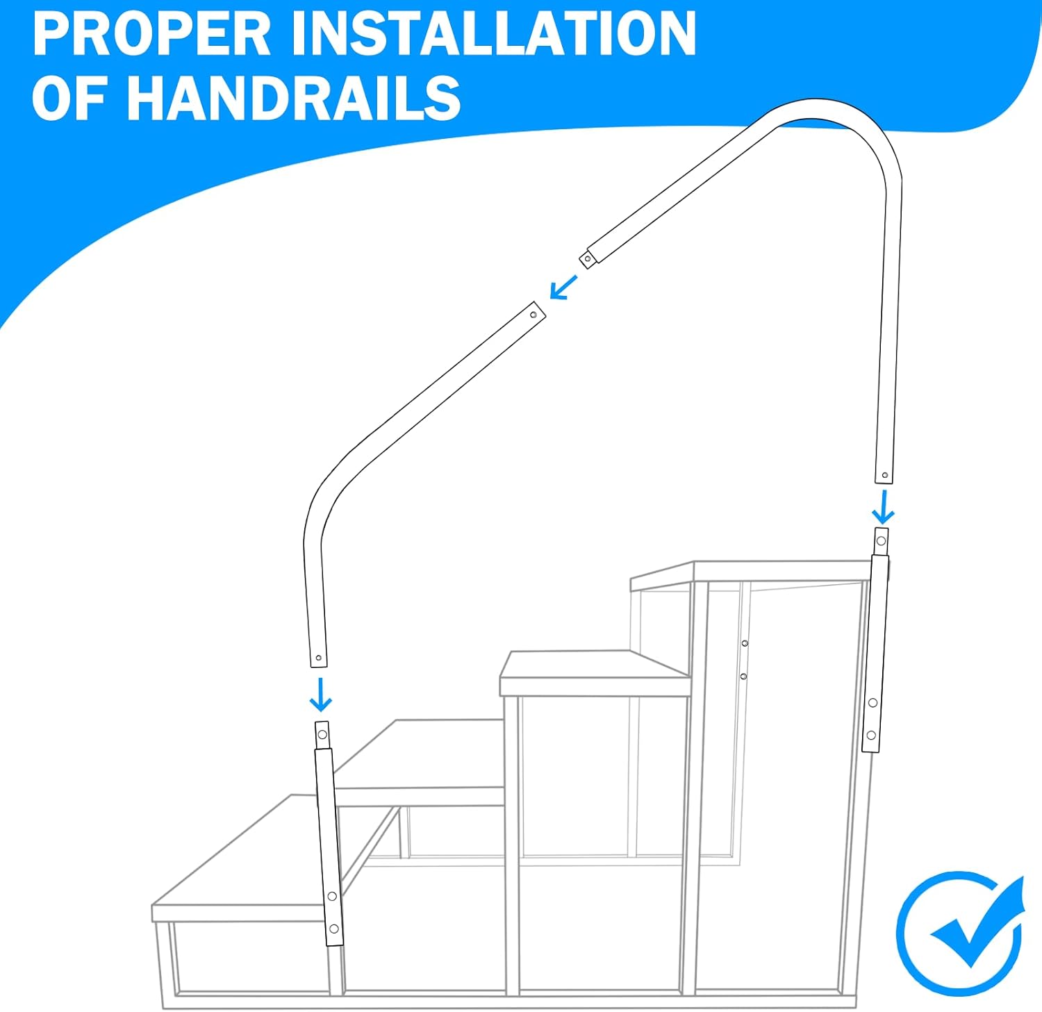 - 【Upgrade RV Step with Handrails】To make the step stool ladder safer, we have upgraded the platform and added extra anti-slip particles. The whole thicken of the rv step is 2mm. You can install the handrail on either side of the rv step stabilizer. RV handrails provide extra support especially for elderly and kids. 𝐖𝐞 𝐡𝐚𝐯𝐞 𝐢𝐧𝐬𝐭𝐚𝐥𝐥𝐚𝐭𝐢𝐨𝐧 𝐢𝐧𝐬𝐭𝐫𝐮𝐜𝐭𝐢𝐨𝐧𝐬 𝐚𝐧𝐝 𝐯𝐢𝐝𝐞𝐨𝐬 𝐨𝐧 𝐭𝐡𝐞 𝐥𝐢𝐬𝐭𝐢𝐧𝐠 𝐩𝐚𝐠𝐞
