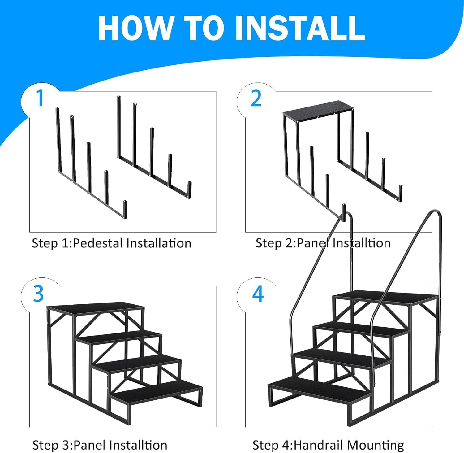 - 【Detachable Porch Steps】Our spa steps with a detachable design, which is easy to store when not in use. Mobile home steps are better options for people with Parkinson's disease, balance issues, poor knee support, disability, and the use of walking sticks. If you have any problems with our steps, contact us without any hesitation