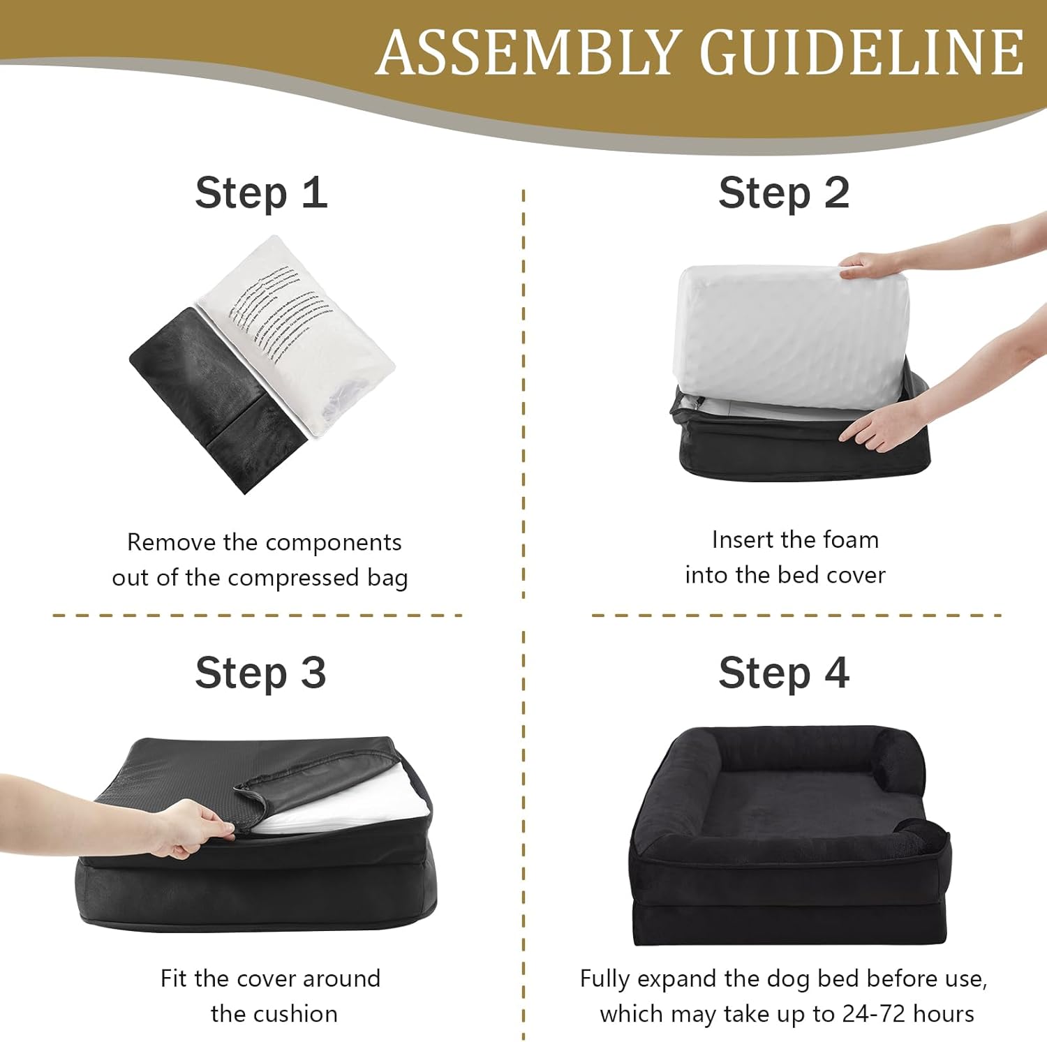 - Suitable Size: Suitable for All Breeds: 24"W x 18"L x 6"D; Sleeping surface: 18.3"W x 15"L (Up to 20lbs); When selecting the product size, please pay attention to the sleeping area. Please wait for 48 hours for full expansion to ensure optimal height and comfort before using.