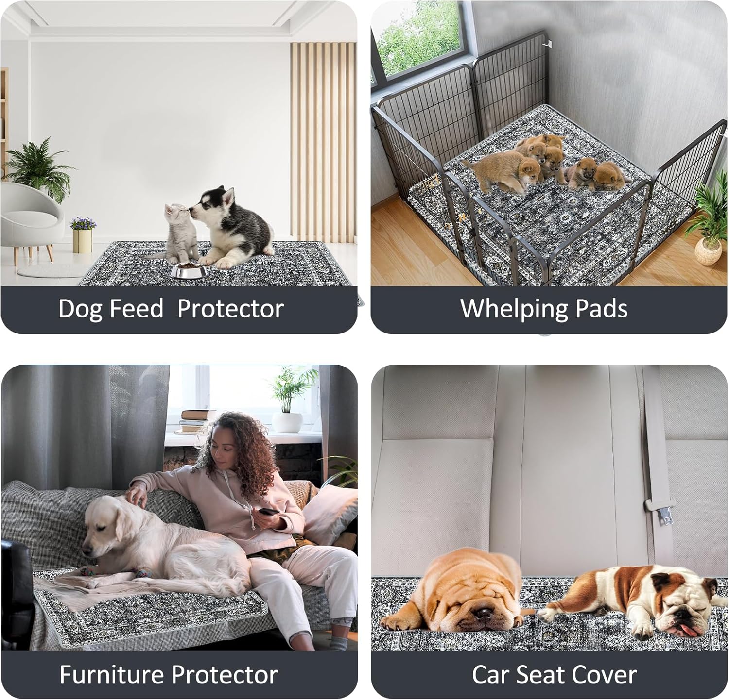 - 🐾【𝐄𝐧𝐡𝐚𝐧𝐜𝐞𝐝 𝐍𝐨𝐧-𝐒𝐥𝐢𝐩 𝐏𝐞𝐫𝐟𝐨𝐫𝐦𝐚𝐧𝐜𝐞】Upgraded with non-slip PVC rug at the bottom, this mat firmly stay on the floor or crate, ensuring the safety of your dog. Not only do puppy reusable pee pads protect against scratches and dirt, they also feature stylish tie-dye and bohemian designs that add a decorative touch to your home.
