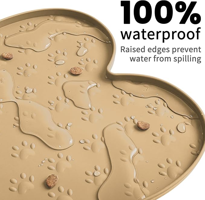 - Raised Edge - The high edge of this feeder mat keeps food and water within the tray and prevents spillage onto a clean floor. Keep your living space tidy and clean, say goodbye to messy floors, you just need to clean the dog bowl mat regularly.