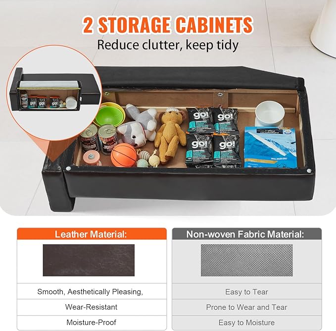 - Practicality Meets Style: More than just a pet accessory, our dog sofa couch complements your home decor effortlessly. The smart design of the 2 storage cabinets frees up space, and its appearance blends seamlessly with any interior style.