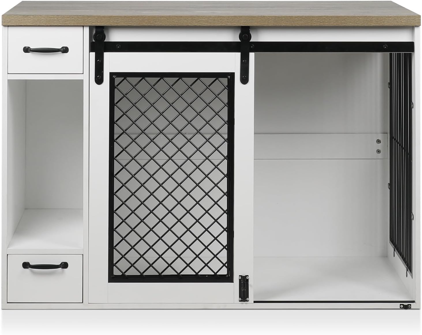 Large Dog Crate, Dog Crates for Medium Dogs, 47.2" Dog Kennel Indoor with Drawers, Feeder Bowls and Storage, 2 Sliding Doors, Heavy Duty Dog Crate Farmhouse Modern Side End Table for Small Medium Dogs