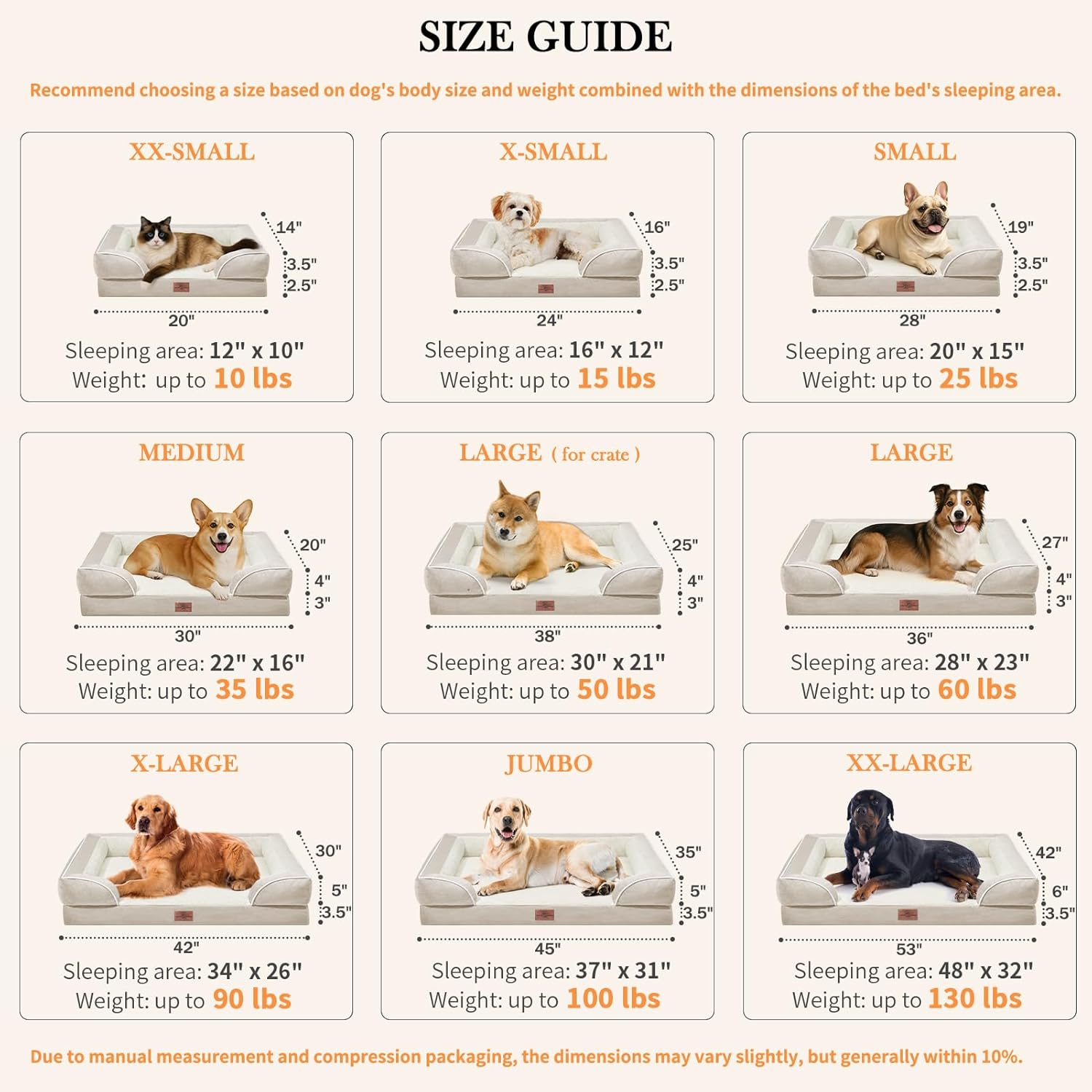 Comfort Expression Waterproof Dog Beds for Large Breed Dogs, Large Dog Beds Orthopedic Foam, Comfy Pet Bed Sofa with Washable Removable Cover & Non-Slip Bottom(Beige)