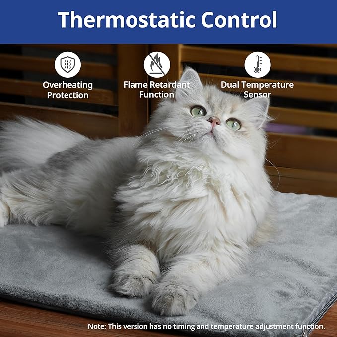 - Plug and play, no timer controller, provides optimal comfort at preset temperatures for dogs & cats (96-109℉)