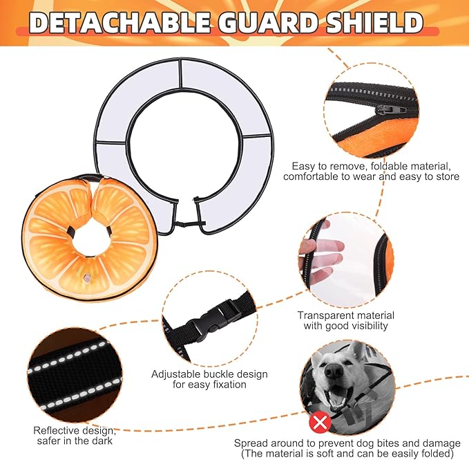 - WIDER ANTI-LICKING AREA: Compared to traditional inflatable collars, this type of inflatable collar has a detachable external plastic transparent protective cover around it, which has a larger anti licking range. Extending outward has replaced extending upwards, providing better visibility and preventing dogs from biting, making it less likely to be bitten. Our detachable baffle is easy to use and can be quickly connected or removed as needed, designed to make your pet's life easier.