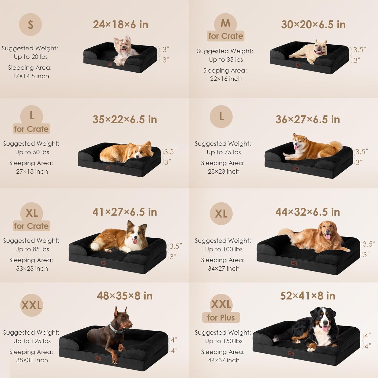 - MEMORY FOAM: EHEYCIGA orthopedic dog bed uses memory foam and egg crate foam that can evenly support to relieve pressure, and provides a good amount of softness and support. The memory foam dog bed especially suits elderly dogs to relieve pressure on joints.