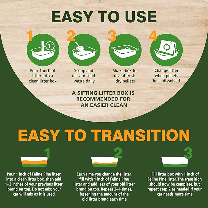 - A NATURAL CAT LITTER CHOICE. No new trees are cut down to make the pine shavings in Feline Pine Platinum Natural Pine Non-Clumping Litter. This cat litter comes from kiln dried shavings reclaimed from lumber production, so it’s a kitty litter that respects our precious natural resources.