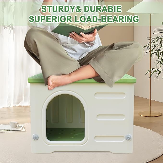 Plastic Cat House for Outdoor Indoor Use, Feral Cat Shelter Indoor Stackable Cat House Insulated Weatherproof Waterproof with Mat-Green