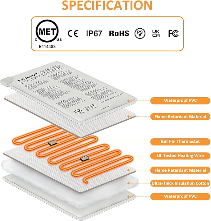- Reliable Quality: Our heated pet bed warmer is constructed with 6 layers of protective structure with UL-Tested heating wire. The heated element can function perfectly even if your pet has urine, keeping your pet comfortable and warm. (note that it's not suitable for outdoor use.)