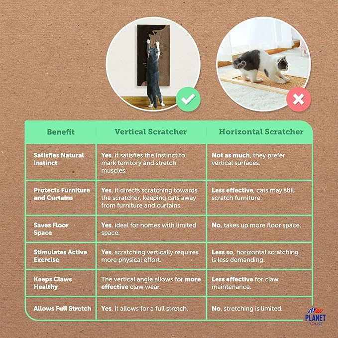 - πΎ IMPROVES POSTURE & HEALTH β SUPPORTS CLAWS & JOINTS: Scratching in a vertical position strengthens their muscles, promotes a healthy posture, and keeps their claws in top condition, reducing stress and anxiety in your cat.