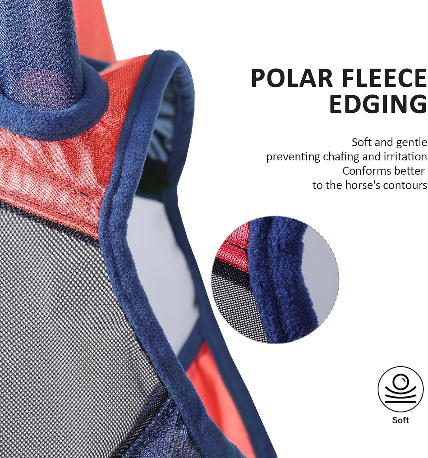 - Soft Fleece Edging: The fleece edging along the seams on the neck and mid-face eliminates rubbing of the horse's hair, reduces gaps, and minimizes pressure marks.