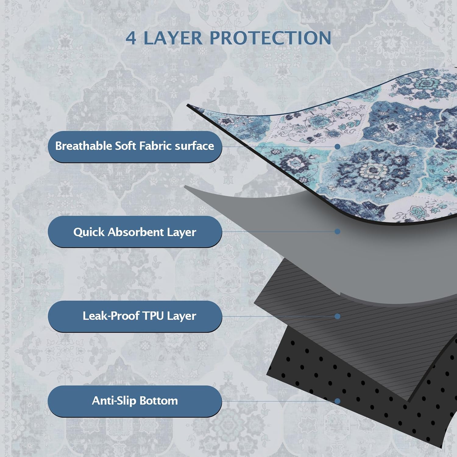 - 【Superior Absorbency】Washable dog pee pads made of multiple layers of waterproof and breathable material, leak-proof. Ensure your floors, seats and beds stay dry all night long.It’s also pet-friendly pads, using soft material to provide comfort for your puppy. Protects the floor and allows pets to lie down more comfortably.
