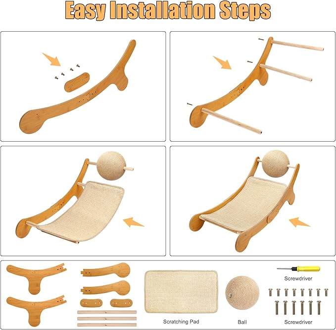 - Stable Design - The cat hammock bed is composed of durable wood board with smooth edges, sturdy sisal pad, and rolling ball. Installed by screws, stable enough for cat to have a rest or play.