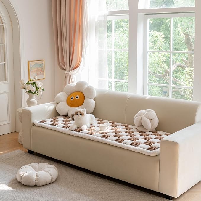 - 【Comfort and Softness】 The dog couch blanket is handmade from thick fleece fabric to ensure thickness, skin friendliness, and will not shed or fade. Large square sofa cover protector, let your fatigue get released. The interior is filled with high resilience PP cotton, which keeps fluffy and soft, even if it is used for a long time.