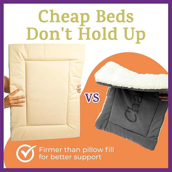 - 𝐏𝐫𝐞𝐦𝐢𝐮𝐦 𝐐𝐮𝐚𝐥𝐢𝐭𝐲 𝐓𝐫𝐮𝐬𝐭𝐞𝐝 𝐒𝐢𝐧𝐜𝐞 𝟏𝟗𝟗𝟗: Our Crate Pads are made for Unlimited Washes! Unlike pillow-filled beds, our special WashSafe fill won’t bunch up or become lumpy. We only use premium fabrics that don't pill, shed, or mat so they look new for years. Note: Not recommended for chewers, but safe if they do.